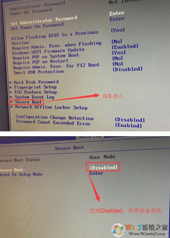 1、開機一直按F2或(FN+F2)進入BIOS,按→方向鍵切換到Security,選擇Secure Boot回車設置成Disabled;