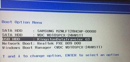 7、插入制作好的U盤啟動(dòng)盤,重啟按F12或FN+F12調(diào)出啟動(dòng)管理對(duì)話框,選擇USB HDD識(shí)別到U盤啟動(dòng)進(jìn)入PE,回車進(jìn)入PE,如圖: