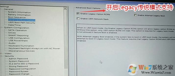 2、切換到Advanced Boot Options將右邊的Enable legacy option roms選項(xiàng)打勾,如下圖所示;