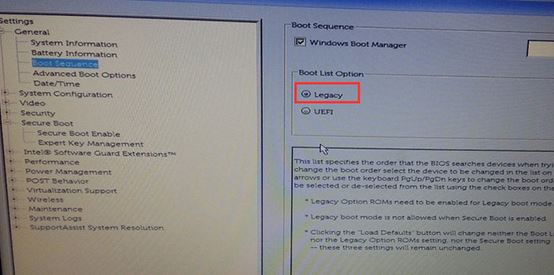 注:戴爾筆記本每做一步BIOS更改記得應(yīng)用一下