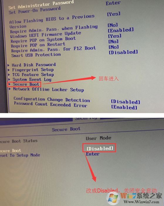 1、開機(jī)一直按F2或(FN+F2)進(jìn)入BIOS,按→方向鍵切換到Security,選擇Secure Boot回車設(shè)置成Disabled;