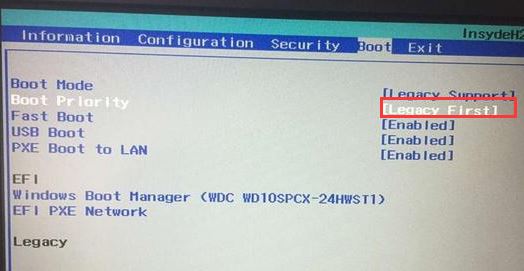 5、再把Boot Priority設置成Legacy First,按F10彈出窗口選擇yes回車;