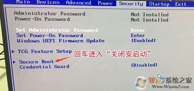 1、開(kāi)機(jī)一直按F2或(FN+F2)進(jìn)入BIOS,按→方向鍵切換到Security,選擇Secure Boot回車設(shè)置成Disabled;