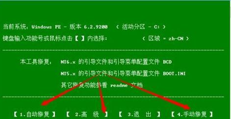2、打開后有‘自動(dòng)修復(fù)’、‘高級修復(fù)’、‘手動(dòng)修復(fù)’,一般情況選擇自動(dòng)修復(fù),所以我們輸入 1 按下回車鍵即可;