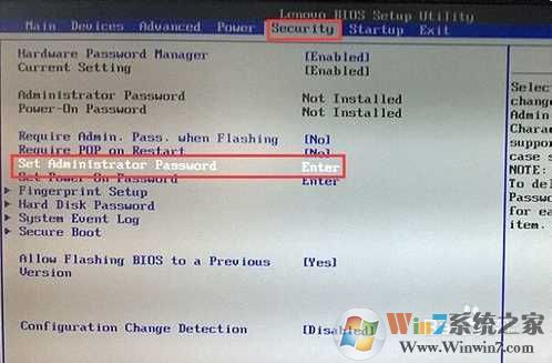 5、然后打開安全啟動選項設(shè)置,如下圖;(Win7系統(tǒng)之家www.cncxm.com )