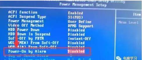 每個(gè)電腦的BIOS并不完全相同,設(shè)置細(xì)節(jié)也有差別,基本都是通過主板的Power Management Setup來設(shè)置電腦定時(shí)開機(jī),有的電腦會(huì)顯示W(wǎng)AKE UP選項(xiàng),有的會(huì)顯示Power-On by Alarm選項(xiàng),大同小異。