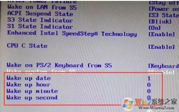 進(jìn)入后用鍵盤方向鍵跳到Power(電源)——再跳到Wake system from S5,按回車鍵。