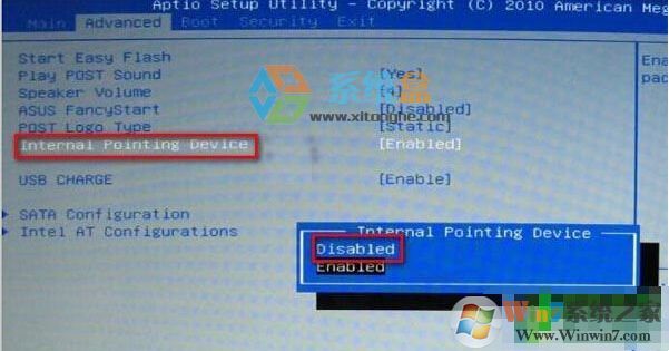進入bios關閉觸控板只要以上幾步簡單步驟即可,如果想把觸控板打開,只要把“intenal pointing device”改成“enabled”就可以了