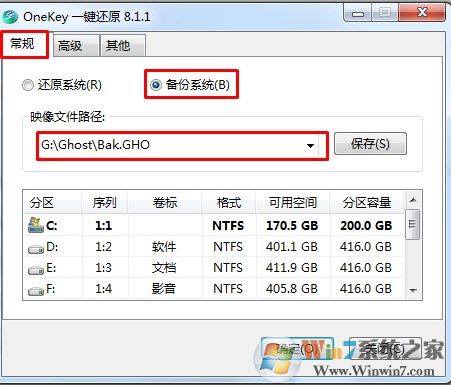 2、返回到常規(guī)選項(xiàng),選擇備份系統(tǒng),然后選折好備份路勁,或者默認(rèn)這個(gè)路勁也行,但是記住這個(gè)文件夾,千萬不要去刪除