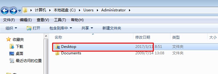 2、在以下路徑找到原來(lái)的桌面文件夾,C:\用戶\Administrator\桌面 (其中Administrator為你登錄系統(tǒng)的用戶名);
