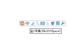 同時(shí)我們也可以使用鼠標(biāo)在輸入法狀態(tài)條上點(diǎn)擊 全月/半月來切換 全角和半角,如下圖;