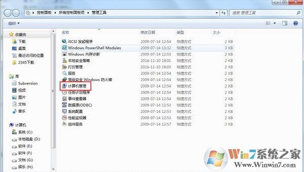 3、在管理工具里,找到“計(jì)算機(jī)管理”,雙擊打開,如下圖所示: