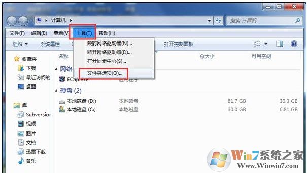 7、PS:如果找不到該文件,可以嘗試打開隱藏的文件看看,具體的方法是,點擊菜單欄“工具”,在下拉框里點擊“文件夾選項”