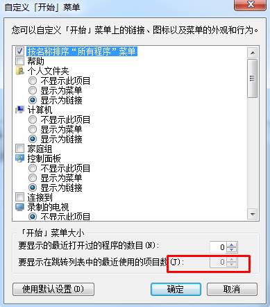 2、再來到自定義中,發(fā)現(xiàn)顯示在跳轉(zhuǎn)列表中的最近使用的項目數(shù) 可以改了,自己設(shè)置一個合適的數(shù)值即可。