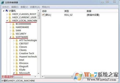 2、我們依次展開:HKEY_LOCAL_MACHINE\SOFTWARE\Microsoft;