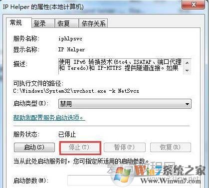 5、大擊打開,設(shè)置啟動(dòng)類型為禁用,然后停止服務(wù);