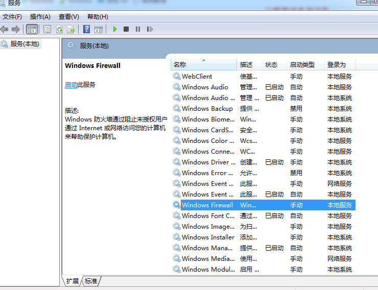 2、在服務(wù)頁面找到“windows firewall”服務(wù);