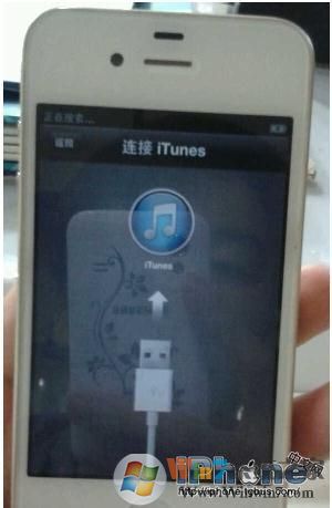 3、在手機屏幕看到連接iTunes提示時,松開Home鍵,如下圖所示。