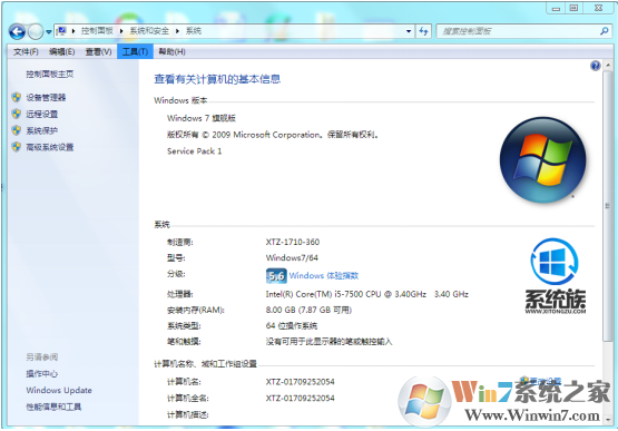 2.點(diǎn)擊系統(tǒng)查看計(jì)算機(jī)的Windows版本和系統(tǒng)類型