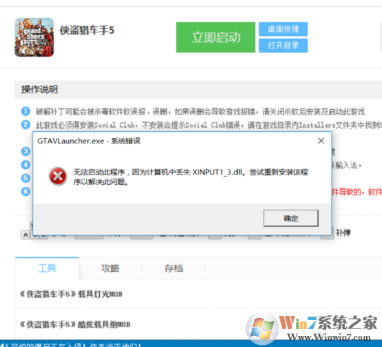 不少小伙伴在下載了俠盜獵車手5(GTA5)后,在游玩時(shí)會(huì)突然出現(xiàn)下方彈窗:無法啟動(dòng)此程序,因?yàn)橛?jì)算機(jī)丟失xinput1_3.dll。嘗試重新安裝該程序以解決此問題。導(dǎo)致俠盜獵車手5(GTA5)無法打開,該如何解決呢?許多小伙伴都找不到合適的解決辦法,不用擔(dān)心,本次為小伙伴們帶來了幾種解決辦法,快來其中看看吧!