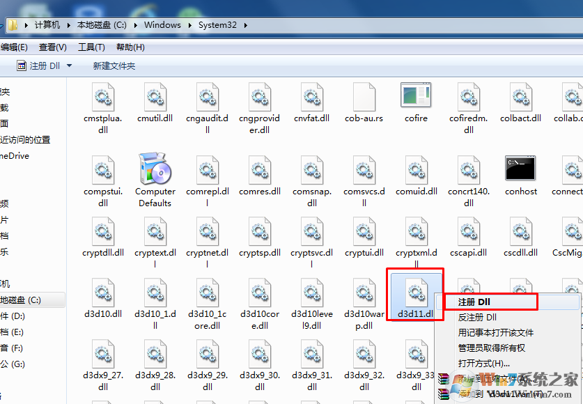 也可以在文件夾目錄中直接注冊,右鍵 d3dd11.dll選擇注冊即可