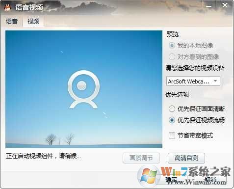 這個軟件大家最熟悉不過了,可以通過其視頻設置來打開攝像頭。運行QQ軟件,打開“系統(tǒng)設置”,在“好友和聊天”選項卡下選擇語音視頻,點擊“視頻設置”按鈕,這個時候便會彈出視頻設置窗口,選擇好視頻設備,就可以看到攝像頭的預覽畫面了,通過“畫質調節(jié)”按鈕將畫面調整到自己滿意的效果即可。這個方法麻煩在要安裝QQ軟件,但QQ軟件應該是許多人必備的軟件吧。一些其他的通信軟件也是具備這項功能的,比如Msn等。