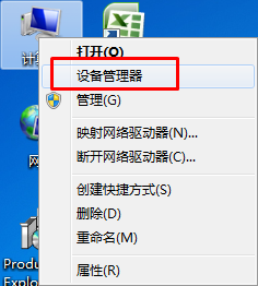 1.在桌面上點擊【計算機】右鍵,選擇【設(shè)備管理器】。