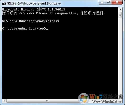 1、打開CMD命令提示符,然后輸入regedit 回車,也可以打開注冊表;winwin7.com