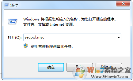 4、按Win+R組合鍵,彈出“運(yùn)行”對(duì)話框,輸入secpol.msc。