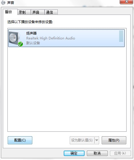 2、點(diǎn)擊揚(yáng)聲器,然后左下角的配置才能被選折,選著配置