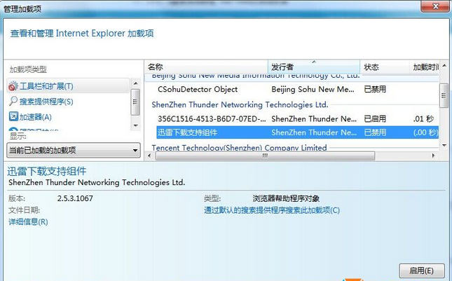 2、Win7系統(tǒng)使用久了以后,我們安裝了很多軟件,部份軟件會在IE瀏覽器里安裝加載項,加載項過多過亂的話也會引起IE瀏覽網(wǎng)頁慢,卡死的情況,最好的方法就是查看加載項,把你認(rèn)為不要的加載項禁用。
