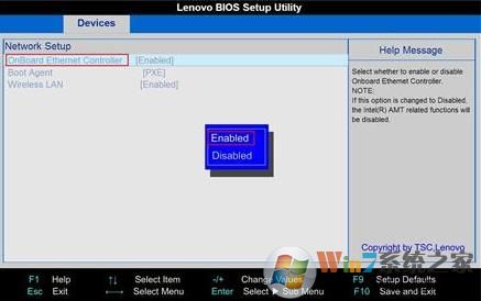 如是因為BIOS中沒有開啟網(wǎng)卡導致的,我們需要在BIOS中開啟網(wǎng)卡。由于BIOS界面多種多樣,選項各不相同,這里只簡介一種,大家參照著設置。