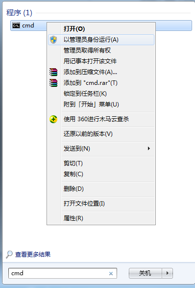 2、然后我們以管理員身份運(yùn)行命令提示符;可以在開始菜單搜索欄輸入cmd來打開