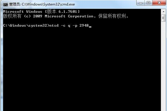 3、在光標(biāo)處輸入 ntsd -c q -p 進(jìn)程的PID值 命令并回車,這時(shí)系統(tǒng)會(huì)強(qiáng)制關(guān)閉該進(jìn)程。