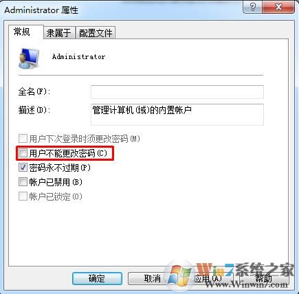 3、出現(xiàn)用戶屬性后,取消勾選“用戶不能更改密碼”選項(xiàng),然后確定;