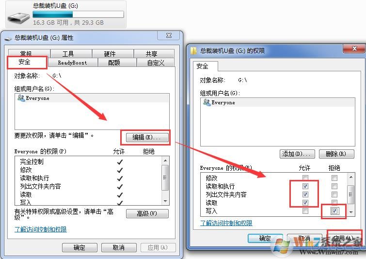 通過(guò)如上設(shè)置之后,U盤(pán)就安全了,不能寫(xiě)入,不能修改,但是可以讀取,如果要添加內(nèi)容的話重新把寫(xiě)入勾選為允許即可。