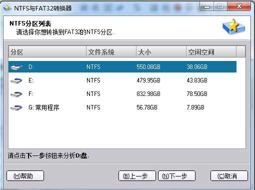 3、打開后選擇 無損數(shù)據(jù)地轉換NTFS分區(qū)到FAT32