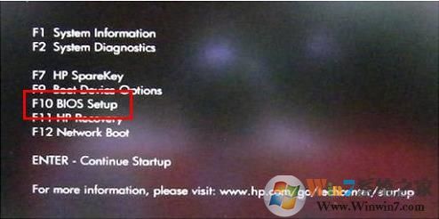 1、筆記本開機(jī)屏幕剛亮?xí)r,連續(xù)的快速點擊“F10”, 即可進(jìn)入BIOS。(針對部分不同型號的HP筆記本)
