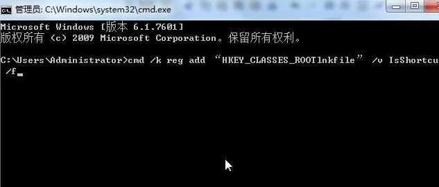 cmd /k reg add "HKEY_CLASSES_ROOT\lnkfile" /v IsShortcut /f