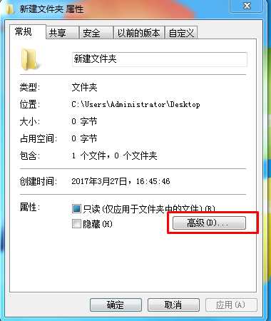 1、右鍵點擊你要加密的文件夾,選擇屬性,然后點擊“高級”按鈕;