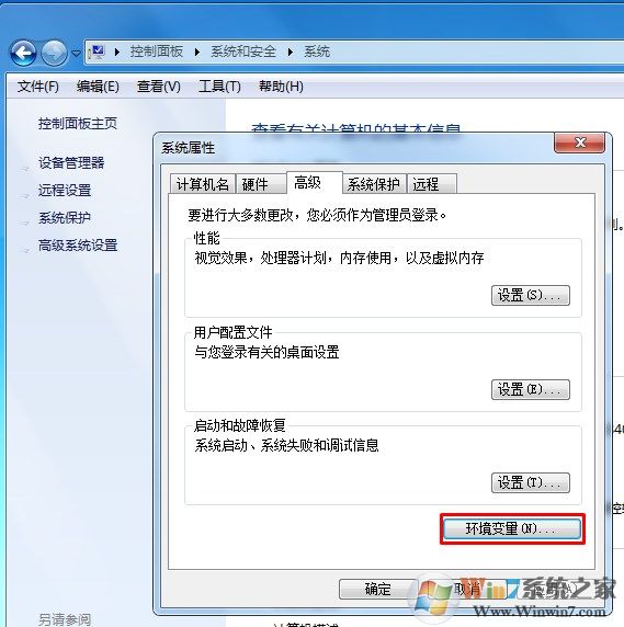 2.切換到“高級(jí)”選項(xiàng)卡,打開“環(huán)境變量”。
