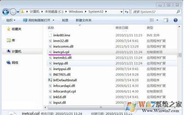 1、打開計算機C盤---windows---system32,找到inetcpl.cpl文件,鼠標左鍵點擊inetcpl.cpl。