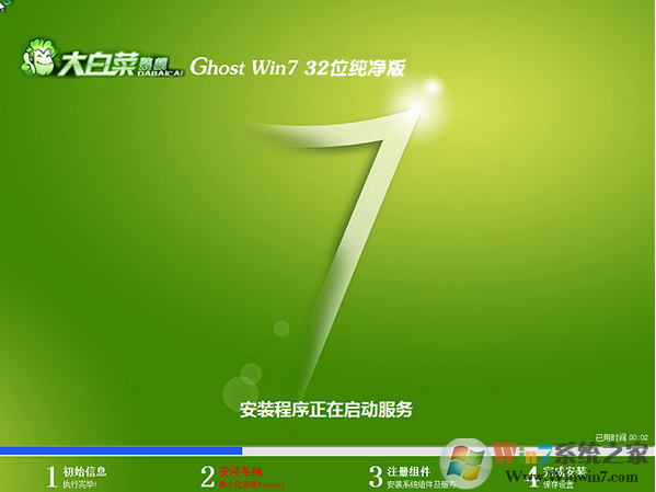 大白菜GHOST WIN7 SP1 32位U盤裝機純凈版V2017.09安裝圖示:
