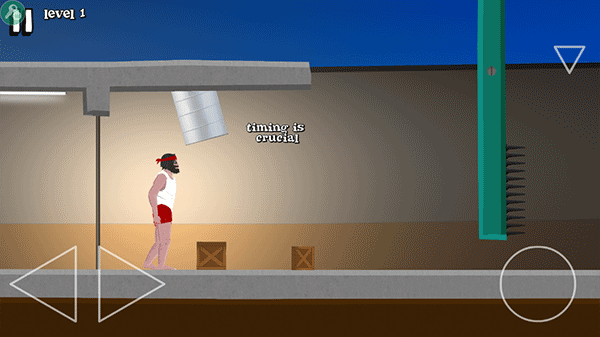 通過在下方持續(xù)來回移動在合適的時候松開跳躍鍵,你實現(xiàn)晃蕩移動,這在某些場景中幫助你避開危險。