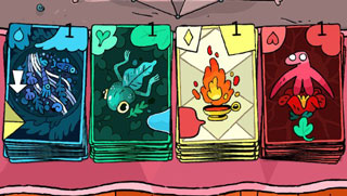 玩家所扮演的是一名出售藥水的商人,你要根據(jù)客戶(hù)的需求來(lái)配置藥水??梢钥吹疆?huà)面的下方有四種顏色的卡牌,分別是紅、黃、藍(lán)、綠,每一次配置藥水需要放置四張卡牌在中間的卡槽內(nèi),至于放置的先后和左右順序玩家可以自行決定。
