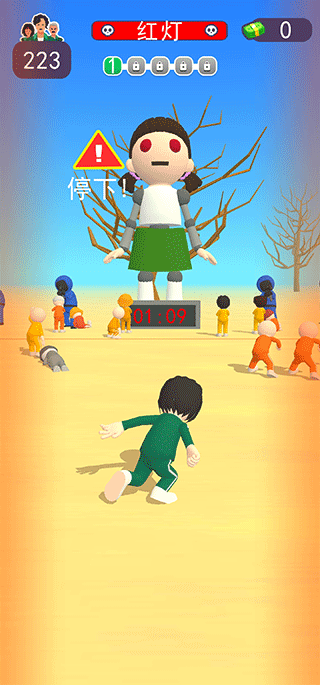 2、進(jìn)入第一關(guān)之后,長按屏幕開始移動,當(dāng)游戲提示要停止的時候我們松開屏幕,等假人回頭完畢之后我們繼續(xù)長按移動,以此類推,到達(dá)終點(diǎn)獲得第一關(guān)的勝利;