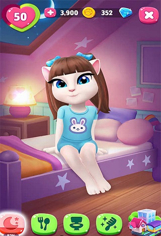 當(dāng)我們進(jìn)入游戲后,安吉拉就會蹦蹦跳跳地出現(xiàn)在我們面前,熱情的和我們打招呼。在休息娛樂篇中,我們主要有幾件事可以去做。當(dāng)安吉拉需要睡眠時,也就是圖標(biāo)變成黃色或者紅色的時候,我們就可以去點擊安吉拉的小床,然后點擊床頭燈,安吉拉就會進(jìn)入到睡眠狀態(tài)了。