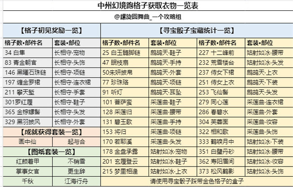 中州幻境劇跑格子獲取衣物一覽表為小伙伴們雙手奉上: