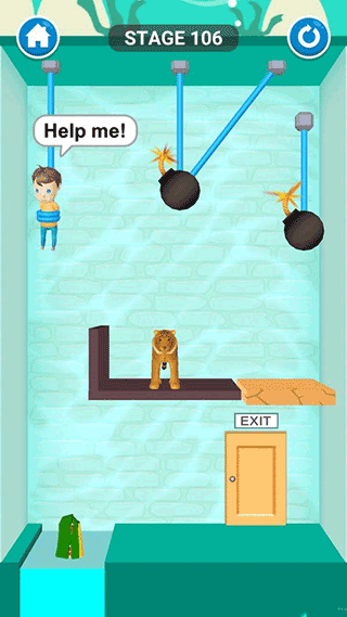 1、需要玩家們進(jìn)行思考,切斷哪一根繩子才能順利的解救這個(gè)孩子;2、非??简?yàn)玩家們的反應(yīng)以及眼力,只有一次機(jī)會(huì),需要把握住;