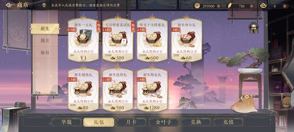 銅錢商店:購買各種禮物與禮包的商店,玩家可以先花個幾百元寶來進行刷新,不過別把錢都在這兒花完了,畢竟后續(xù)給名士升階也得用到元寶。